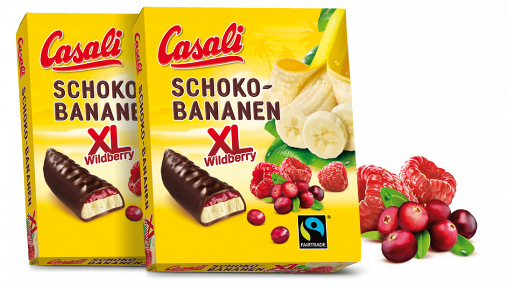 Már az első harapásnál elmerülsz az extra gyümölcsös ízélményben. Wow! A Casali csokoládés banán XL wildberry egy egyedi kombináció. A finoman gyümölcsös banánhab az egzotikus erdei bogyó réteg málna és áfonya ízével olvad össze. Az egészet saját pörkölésű kakaóból készült ropogós csokoládé borítja. A töltelék 12%-os gyümölcstartalma minden bizonnyal elvarázsolja az ízlelőbimbóidat. A Casali csokoládés banán XL wildberry természetesen mentes a mesterséges színezékektől és a tartósítószerektől, és csak természetes aromákat tartalmaz. A Casali csokoládés banán XL wildberry-t környezetbarát, újrahasznosítható 140 g-os kartoncsomagolásban hozzuk forgalomba. Mivel a természetesség és a fenntarthatóság fontos számunkra. Mmm – annnnyira gyümölcsös!