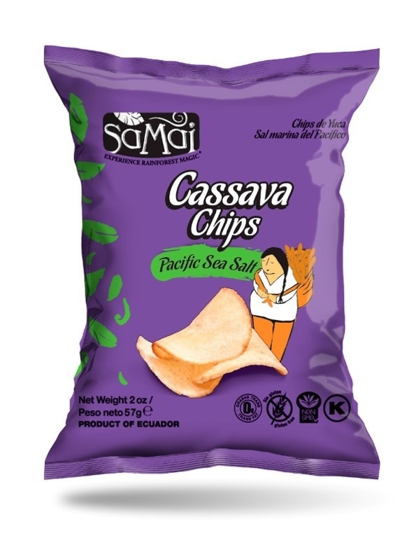 A SAMAI Cassava chips prémium minőségű cassavából készül, melyet Dél-Amerika csendes-óceáni partján, Ecuadorban helyi farmerek termesztenek.