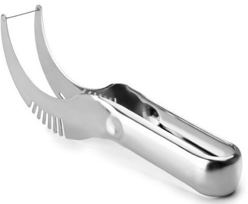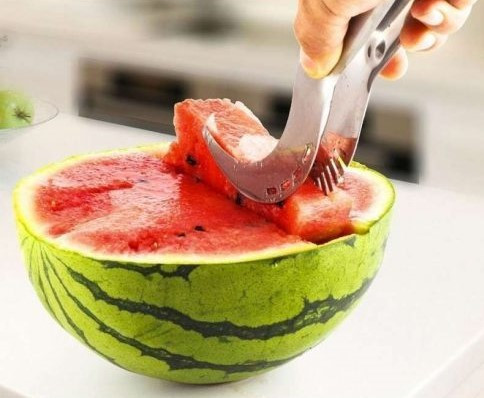 A dinnye szeletelő és tálaló 21,5cm-es rozsdamentes fémből készült konyhai eszköz, amely megkönnyíti és maszatolás mentessé teszi a dinnye szeletelést és egyúttal a tálalást is megoldja.