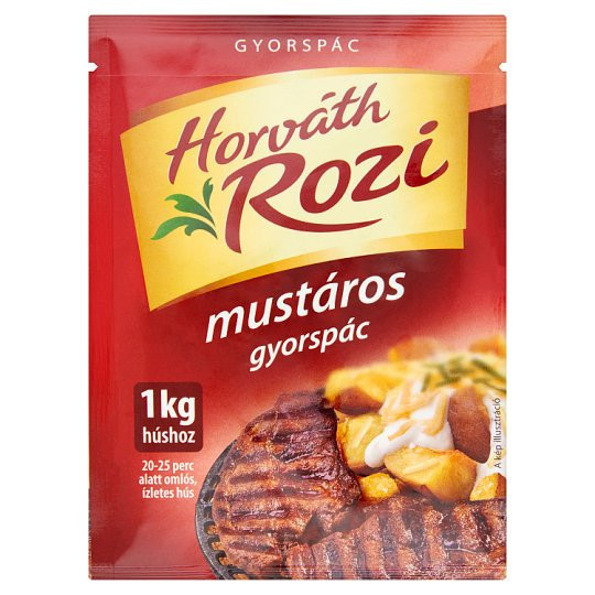 Mustárpehely (35,7%), Jódozott étkezési só (étkezési só, kálium-jodid), Fokhagyma, Kömény, Bors, Chili, Kakukkfű, Kukoricakeményítő, Majoranna, Savanyúságot szabályzó anyag nátrium-citrát, Ízfokozó nátrium-glutamát, Fehérjebontó enzim: papain