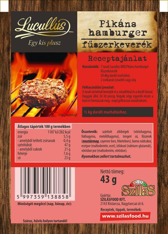 Elkészítési javaslat: A tasak tartalmát keverjük el a zsiradékkal és a darált hússal. Hagyjuk állni 20-30 percig. Vegyük négy egyenlő részre a húst és formázzuk meg, majd grillrácson süssük készre.