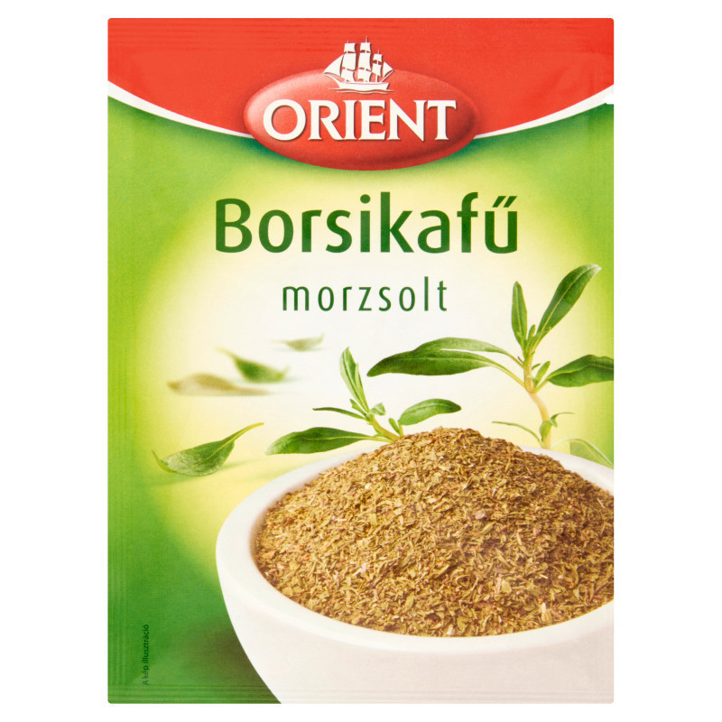 Morzsolt, szárított borsikafű aromazáró csomagolásban.