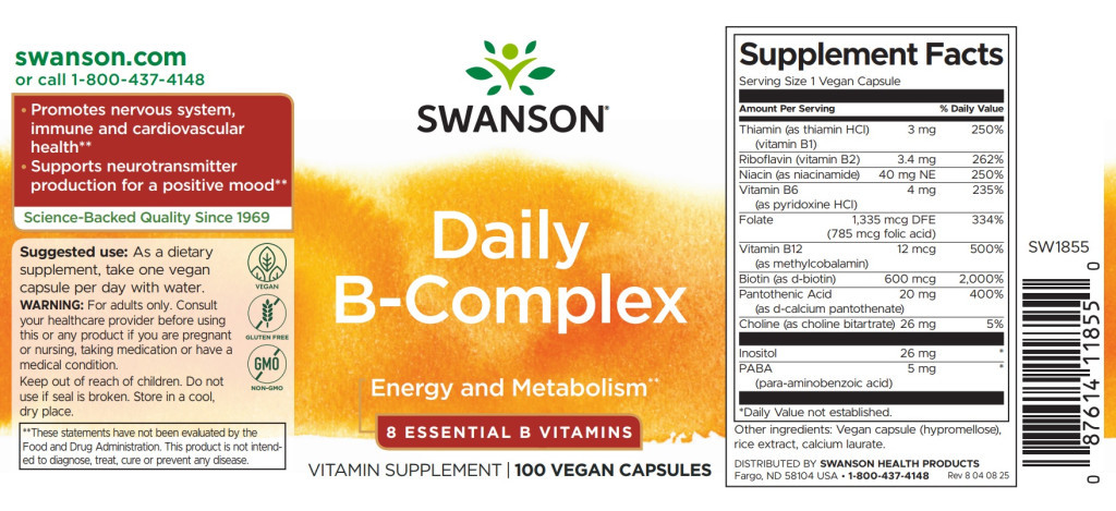 Swanson Daily B-Complex 100 kapszula 8 féle B vitamin napi adagja