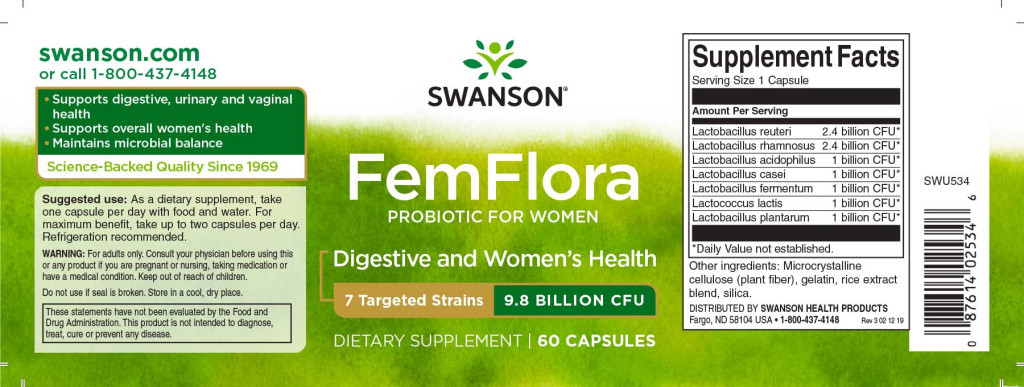 Swanson FemFlora probiotikum nőknek 7 törzs / 9,8 milliárd CFU / 60 kapszula