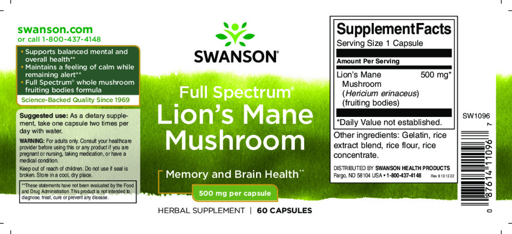 Swanson Lion's Mane Mushrom (Süngomba) 60 kapszula