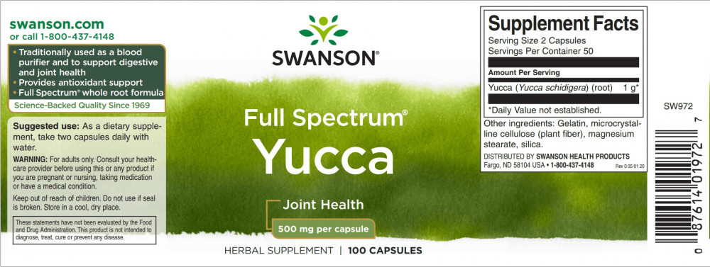 Swanson Yucca (pálma gyökér) 500mg 100 kapszula