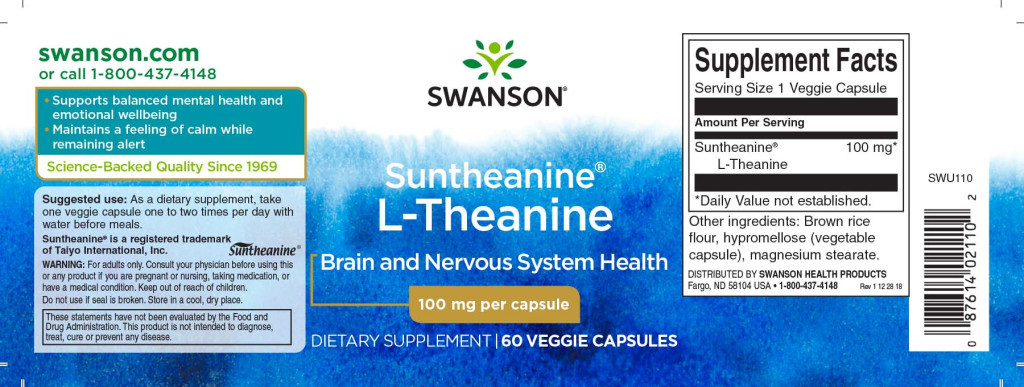 Swanson Suntheanine L-teanin 100mg 60 növényi kapszula