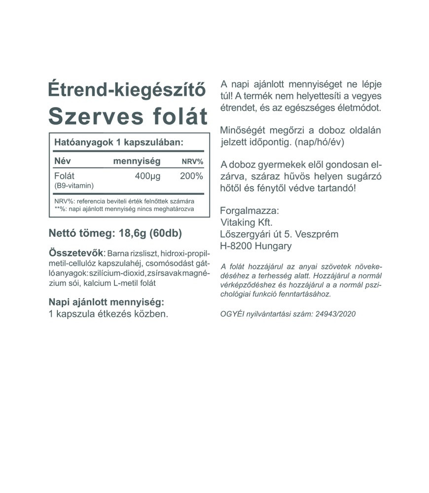 Vitaking Folate - B9 vitamin 400mcg (60) kapszula szerves folát