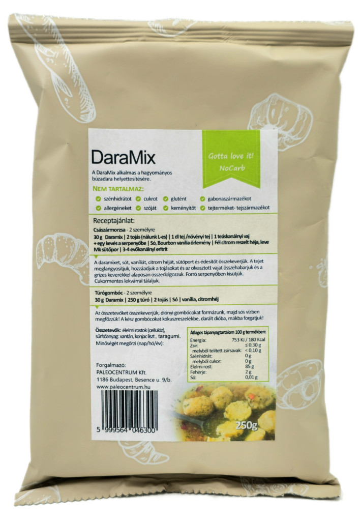 A DaraMix tökéletes helyettesítője a hagyományos búzadarának - mindezt a már jól megszokott kiváló minőségben és szénhidrátmentesen! Semleges íze, szemcsés állaga garantálja, hogy a belőle készülő ételek megtévesztően hasonlítanak a hagyományos búzadarából készültekre!