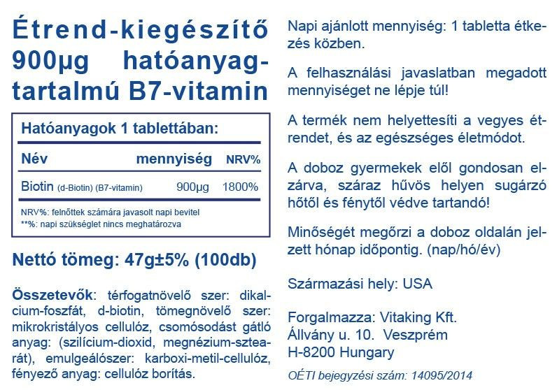 Vitaking Biotin 900mcg B-7 (100) tabletta