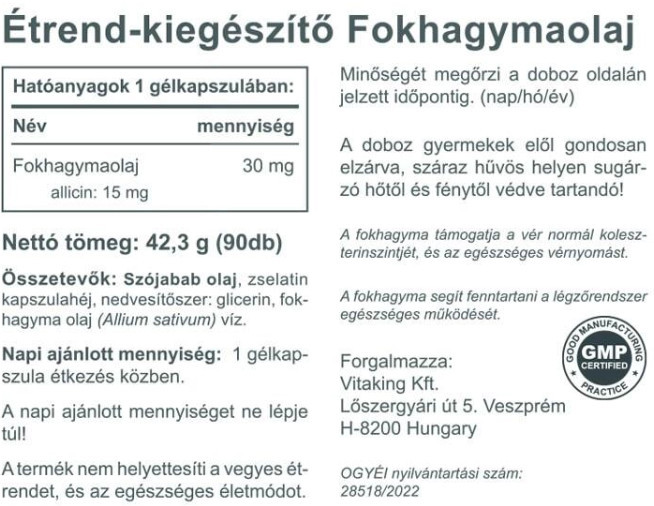 Vitaking fokhagyma olaj – a fokhagyma ereje kapszulába zárva.