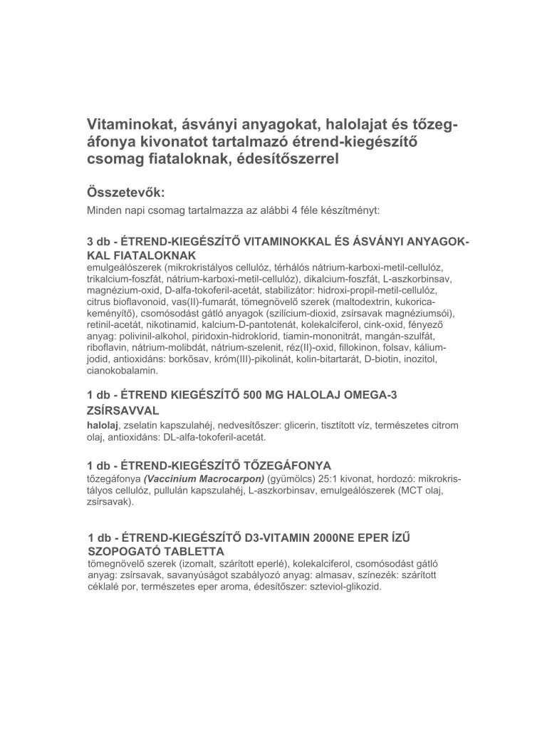 • 3 db Étrend-kiegészítő vitaminokkal és ásványi anyagokkal fiataloknak: