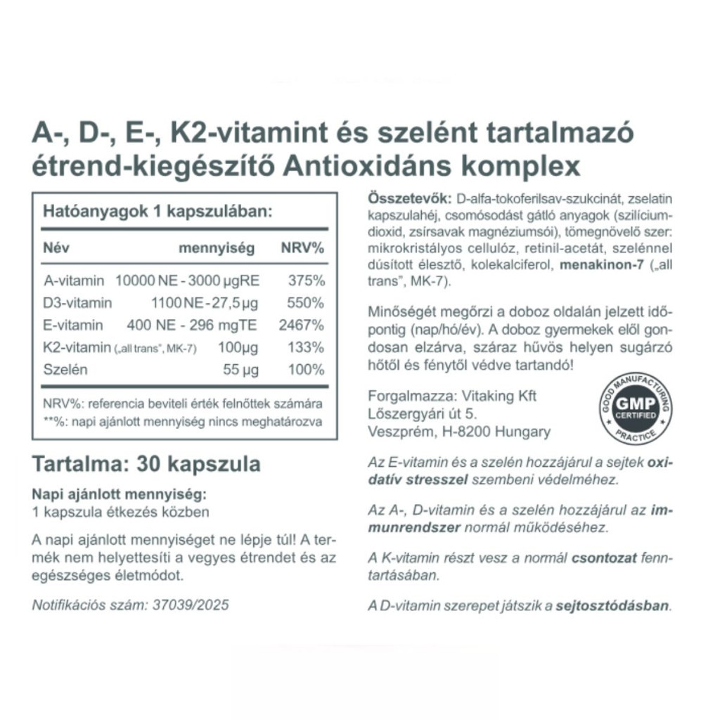 Vitaking Antioxidáns komplex – A+D+E+K2+ szelén (30) kapszula