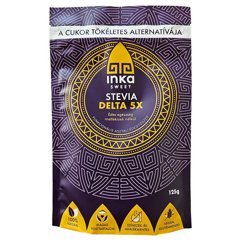 Az Inka Sweet Stevia Delta5x, 5-ször édesebb a cukornál. Ugyanolyan édesítő hatás eléréséhez ötödannyi kell belőle, mint cukorból. Ráadásul még karamellizálható is!