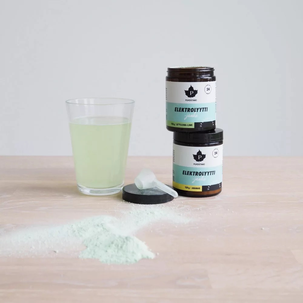 A Puhdistamo Electrolyte Powder holisztikus, elektrolitokban gazdag, ízletes, cukormentes ital, mely segít fenntartani a tested számára elengedhetetlen elektrolitok megfelelő szintjét.