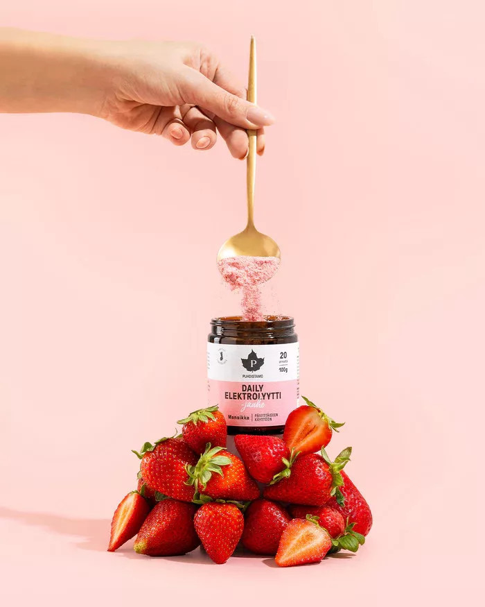 A Puhdistamo's Daily Electrolyte Powder egy nagyon ízletes, friss, eper ízű szomjoltó, amely segít fenntartani a szervezet optimális folyadékegyensúlyát.