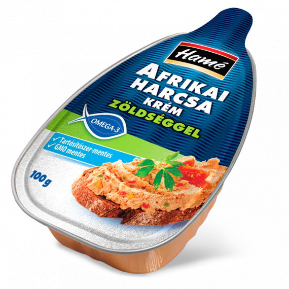 Afrikai harcsa 30 % (Clarias gariepinus), Repceolaj, Ivóvíz, Paporika (9%), Ízesítő készítmény (szójaliszt, tejfehérje, keményítő, étkezési só, sűrítőanyag: guargumi, tojásfehérje, fűszer, ízfokozó: nátrium-glutamát, szárított zöldségek (vöröshagyma, fokhagyma), aroma (zellert tartalmaz), dextróz, antioxidáns: aszkorbinsav, színezék: paprikakivonat), Zöldbab 4%, Vöröshagyma 4%, Paradicsompüré, Étkezési só, Póréhagyma (0,5%), Petrezselyemzöld