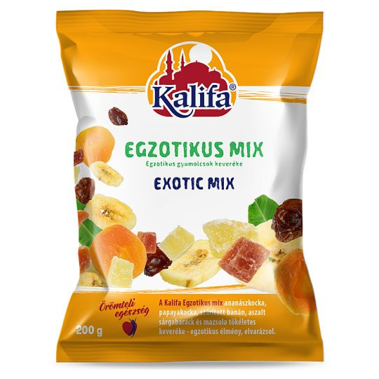 - A Kalifa Egzotikus mix ananászkocka, papayakocka, szárított banán, aszalt sárgabarack és mazsola tökéletes keveréke - egzotikus élmény, elvarázsol.