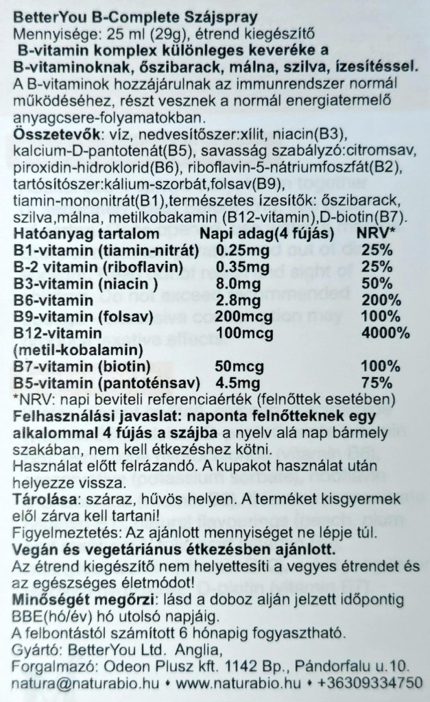 BetterYou B-Complete szájspray 25ml 32 napi adag