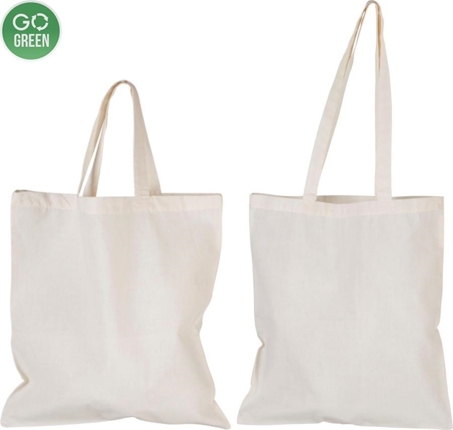 Natúrszínű, környezetbarát vászon bevásárlótáska hosszú füllel.