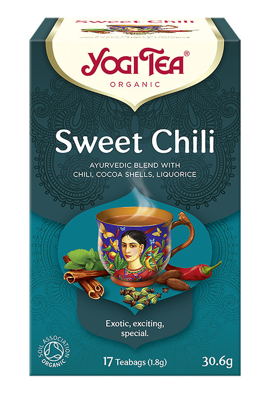 Tea azok számára, akik vágynak a felfedezésre. A YOGI TEA® Édes Chili tea ötvözi az édes ízt a kellemes fűszerességgel. Egy tea, amely kicsit olyan, mint maga az élet, mint a ying és yang egyensúlya. Az otthon kényelmét idéző csokoládé íze keveredik menta frissességével és egy csöppnyi chilivel, melyek elrepítenek bennünket egy élményekkel teli utazásra, amit szívünk szerint időről-időre újra átélnénk.