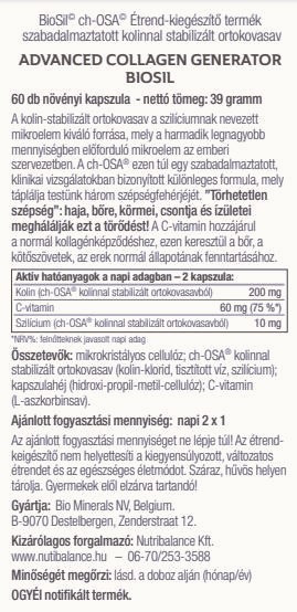 Kijelenthetjük azt, hogy a BioSil® ch-OSA® felfedezése mérföldkőnek számít ezen a területen, mert egyedülálló módon képes elősegíteni a kollagénképződést, így realitást kapott az, hogy egy természetes formula szájon át történő bevitelével is tudjuk támogatni a kollagénszintézisünket. Szigorú placebo kontrollált kettős vak klinikai vizsgálatok igazolják, hogy a szabadalmaztatott BioSil® ch-OSA® csökkenti a ráncokat, növeli a bőr rugalmasságát, erősíti és dúsítja a hajat, erősíti a körmöket, és támogatja a csontok és ízületek egészségét. A BioSil® történelmi felfedezése tudományos áttörés a kollagénszintézisben.