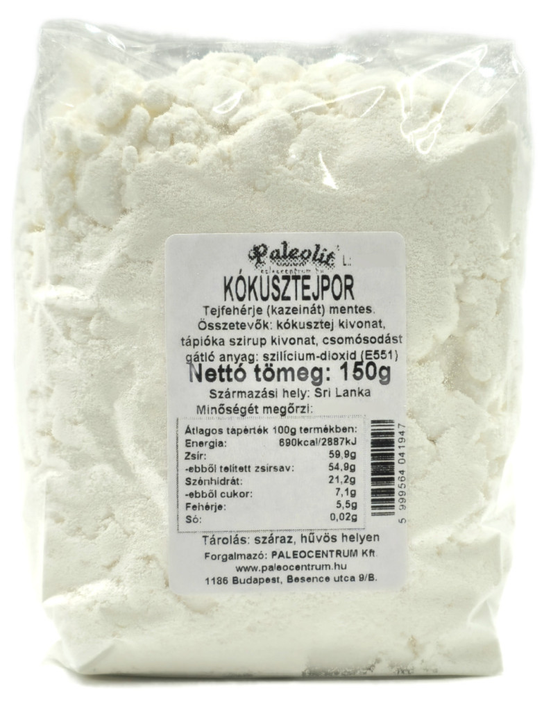 Adagolása: meleg vízzel keverje el a kókusztejport. 150g kókusztejporból kb. 4 dl sűrű kókuszkrém vagy 1-1,5 liter sovány kókusztej készíthető.