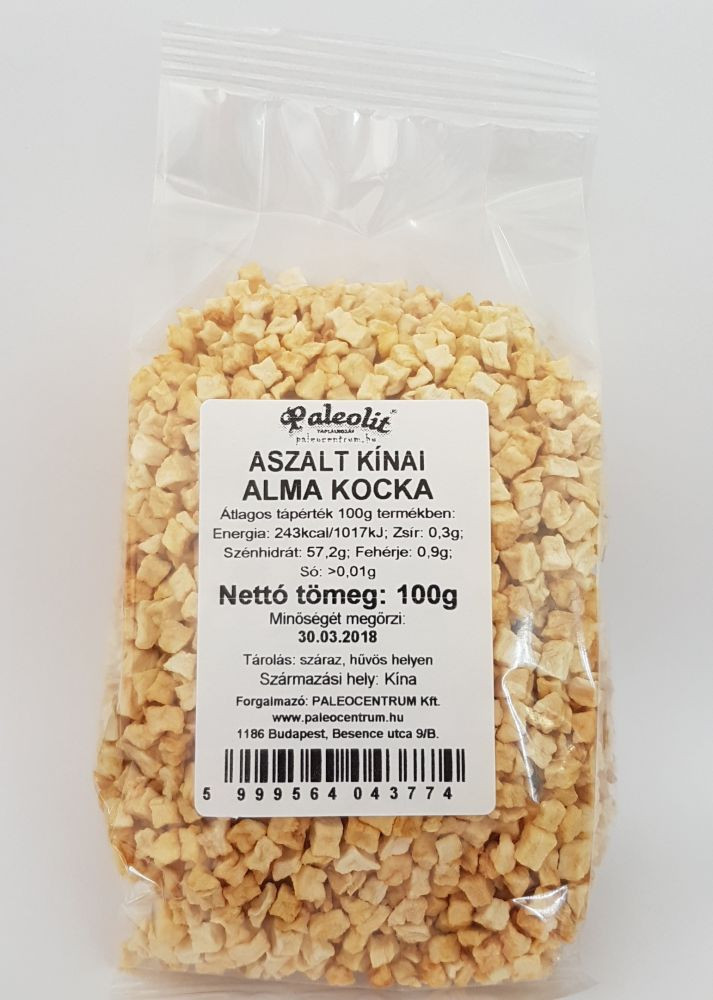 Összetevők: aszalt alma kocka, antioxidáns: citromsav.