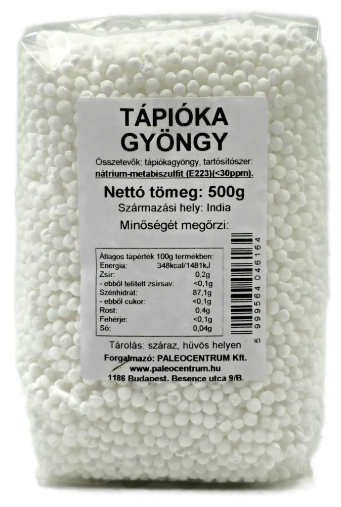 Összetevők: tápiókagyöngy, tartósítószer: nátrium-metabiszulfit (E223)(<30ppm).