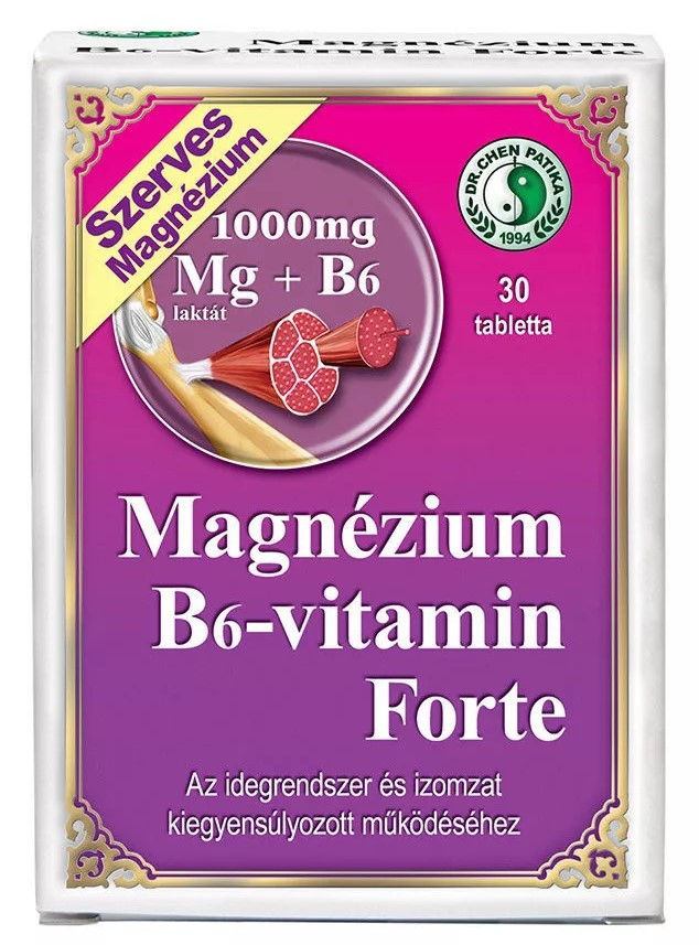Aktív anyagok napi 1 tablettára: 1000 mg magnézium-laktát (123,3 mg magnézium, NRV 32,8%), B6-vitamin: 1,4 mg (NRV 100%).