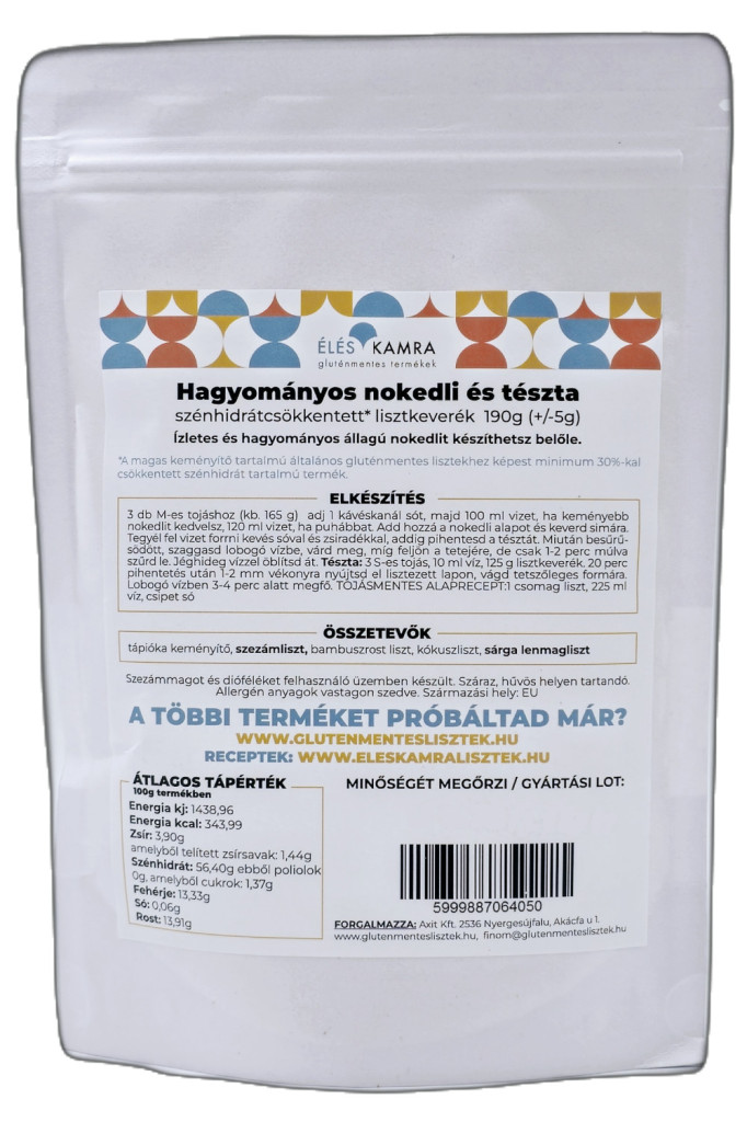 • Éléskamra Hagyományos nokedli és tészta szénhidrát csökkentett* lisztkeverék