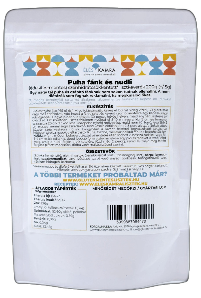 - 1 csomag Éléskamra Puha fánk és nudli szénhidrát csökkentett* lisztkeverék