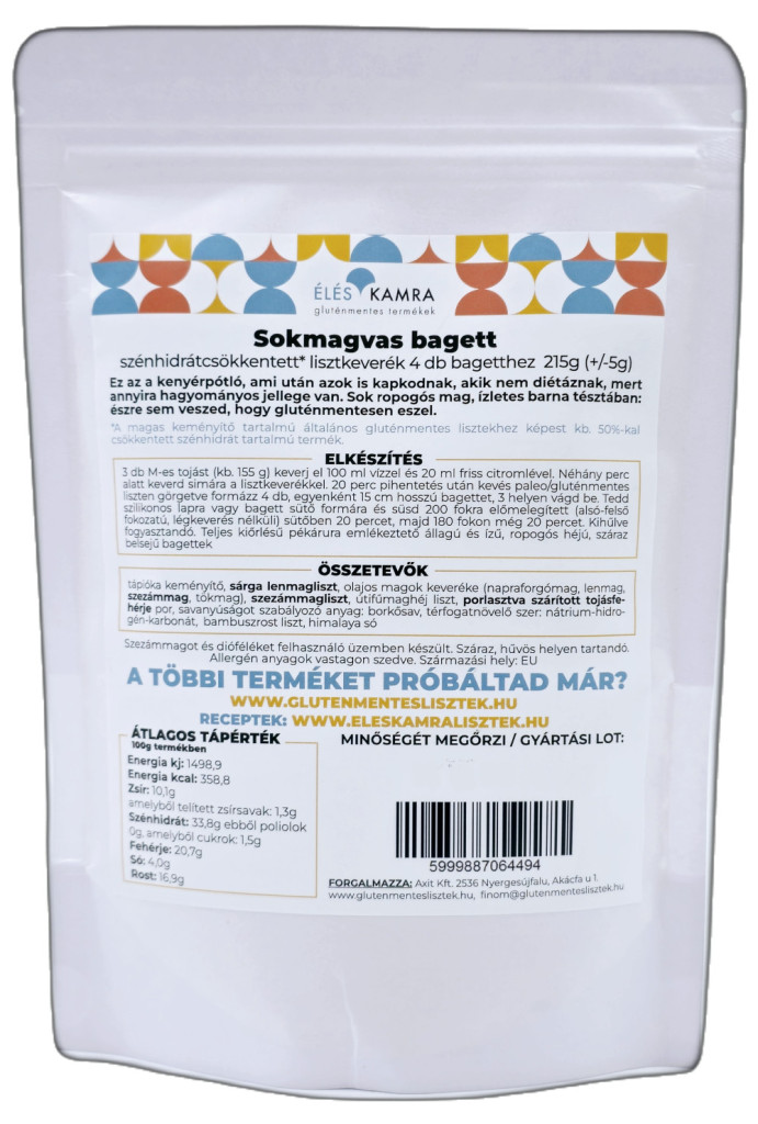 • 1 csomag Éléskamra Sokmagvas bagett szénhidrát csökkentett* lisztkeverék