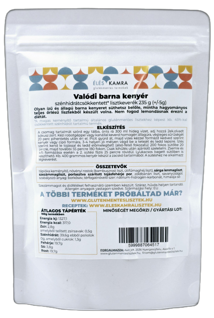 • 1 csomag Éléskamra Valódi barna kenyér szénhidrát csökkentett* lisztkeverék
