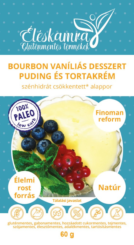 A magas keményítő tartalmú általános gluténmentes pudingporokhoz képest kb. 30%-kal csökkentett szénhidrát tartalmú termék.