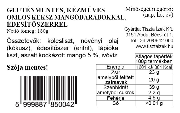 Omlós keksz mangódarabokkal 150g Tiszta Ízek gluténmentes, kézműves