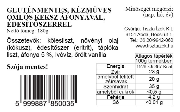 Áfonyás vaníliás omlós keksz 150g Tiszta Ízek gluténmentes, kézműves