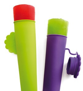 Évszak független ez a 20cm-es, 2 darabos (lila+zöld) szilikon, Calippo fagyi-sorbet készítő forma, nélkülözhetetlen eszköze a házi sorbet készítésnek. Felhasználás előtt egy "forró fürdő" segít, hogy a fagyi könnyen kicsusszanjon a formából.