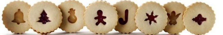 5cm-es átmérőjű, 8 különféle karácsonyi motívumot tartalmazó fém linzer kiszúró készlet, műanyag dobozban.