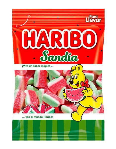 Haribo sandia görögdinnye ízű 3 rétegű habcukor.