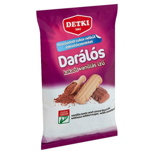 Darálós vaníliás ízű omlós keksz cukor hozzáadása nélkül, édesítőszerekkel [búzaliszt, pálmazsír, édesítőszerek (maltit: 8%, izomalt: 8%), inulin, teljes tojáspor, térfogatnövelő szerek (ammónium-hidrogén-karbonát, nátrium-hidrogén-karbonát), aromák, emulgeálószer (lecitinek), étkezési só], Darálós kakaós omlós keksz cukor hozzáadása nélkül, édesítőszerekkel [búzaliszt, pálmazsír, édesítőszerek (maltit: 8%, izomalt: 8%), zsírszegény kakaópor (3%), aromák, inulin, teljes tojáspor, térfogatnövelő szerek (ammónium-hidrogén-karbonát, nátrium-hidrogén-karbonát), emulgeálószer (lecitinek), étkezési só]