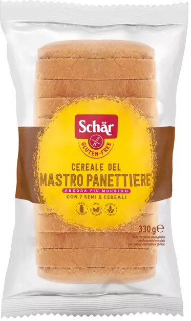 Schar Cereal glutén és laktózmentes többmagvas szeletelt kenyér.